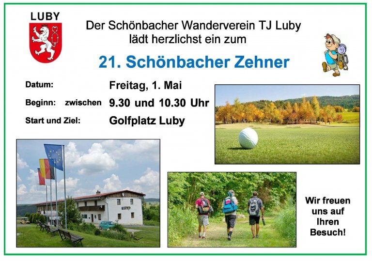 der Wanderverein unserer Partnerstadt Schönbach/Luby lädt am Donnerstag, 1. Mai 2026, bereits zum 21. Mal herzlich zum beliebten „Schönbacher Zehner“ ein.